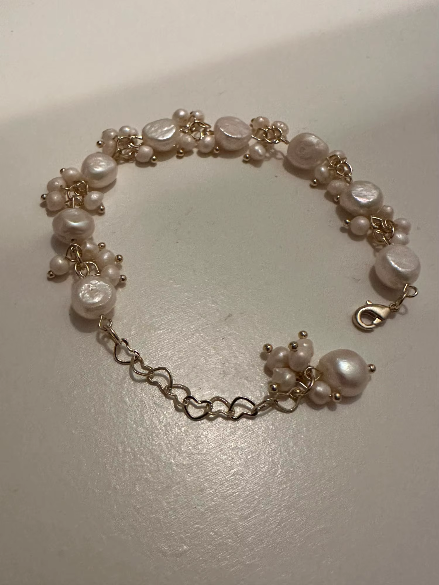 Natural Baroque Freshwater Pearl 14K Gold Charm Bracelet