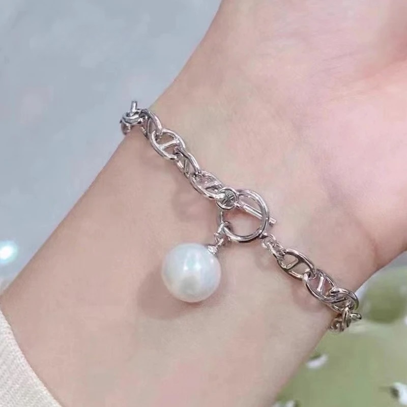 Natural Freshwater True Pearl Pig Nose Bracelet Personality Fashion S925 Sterling Silver