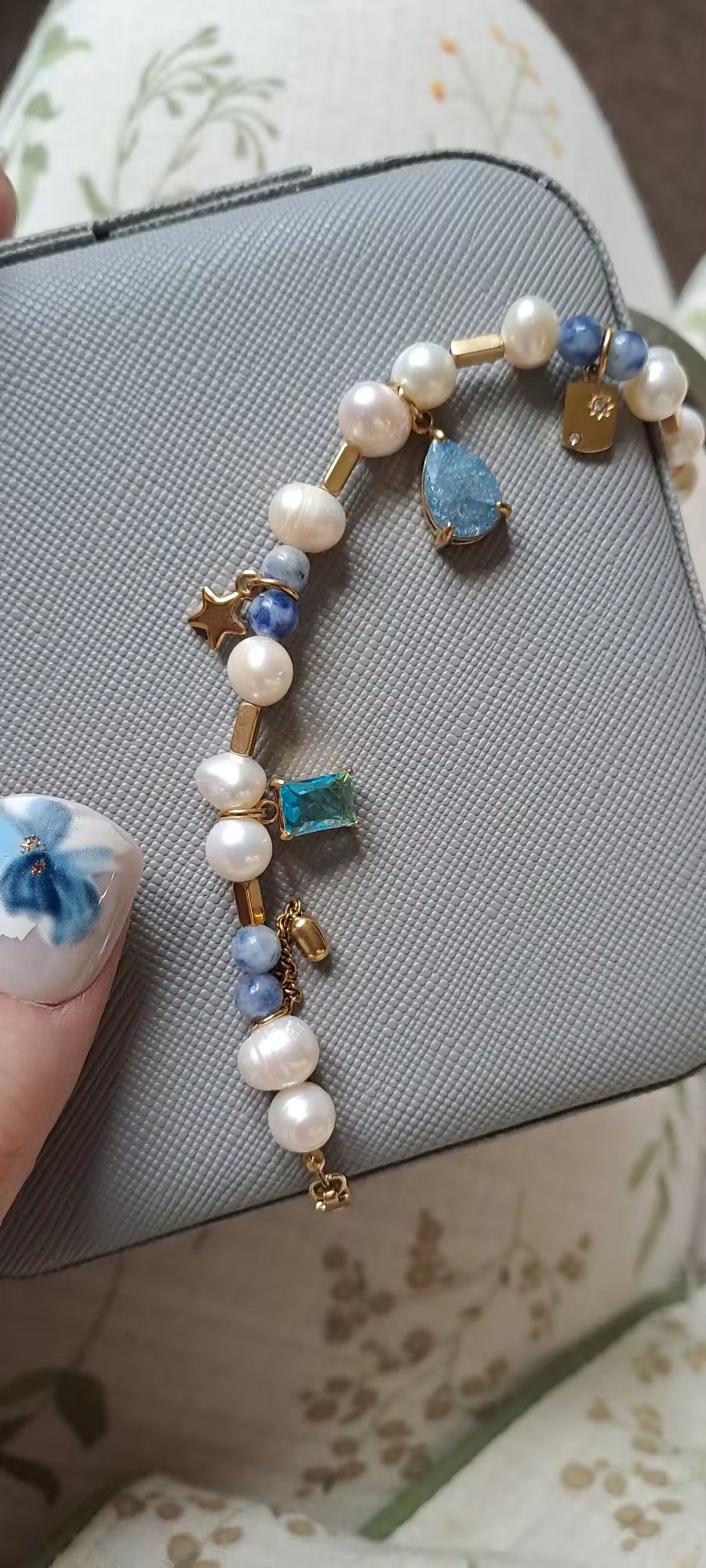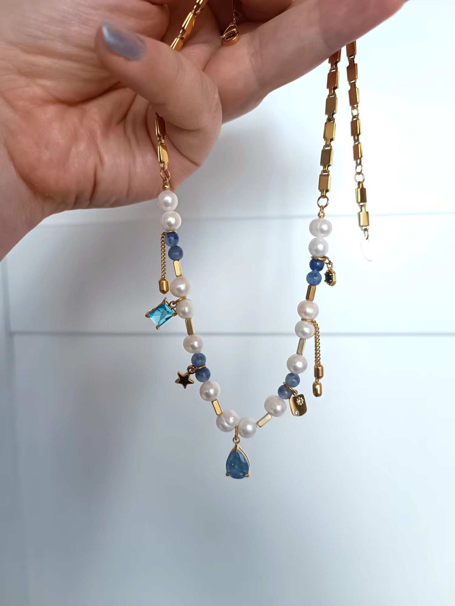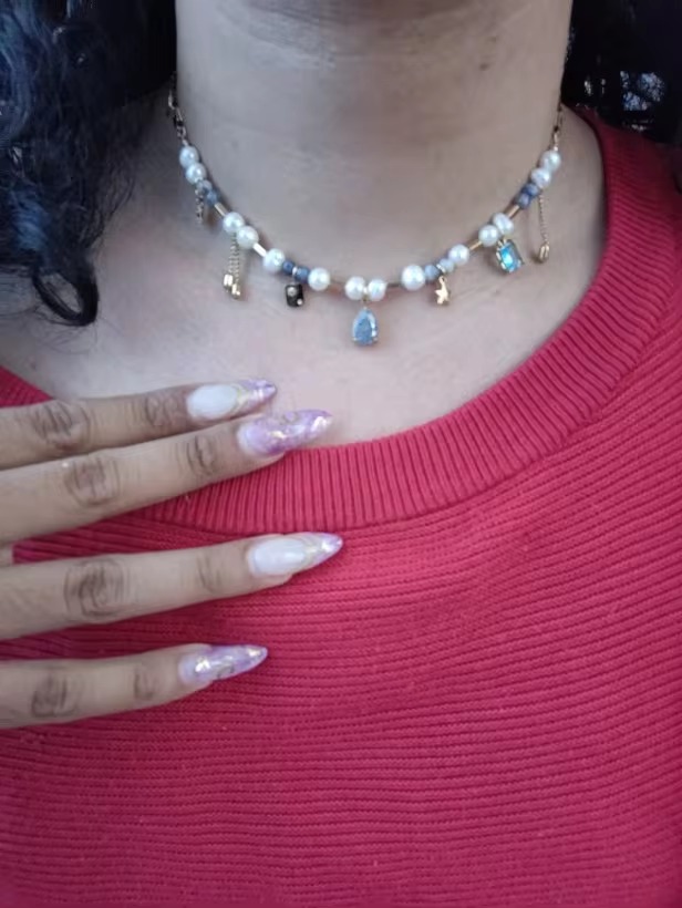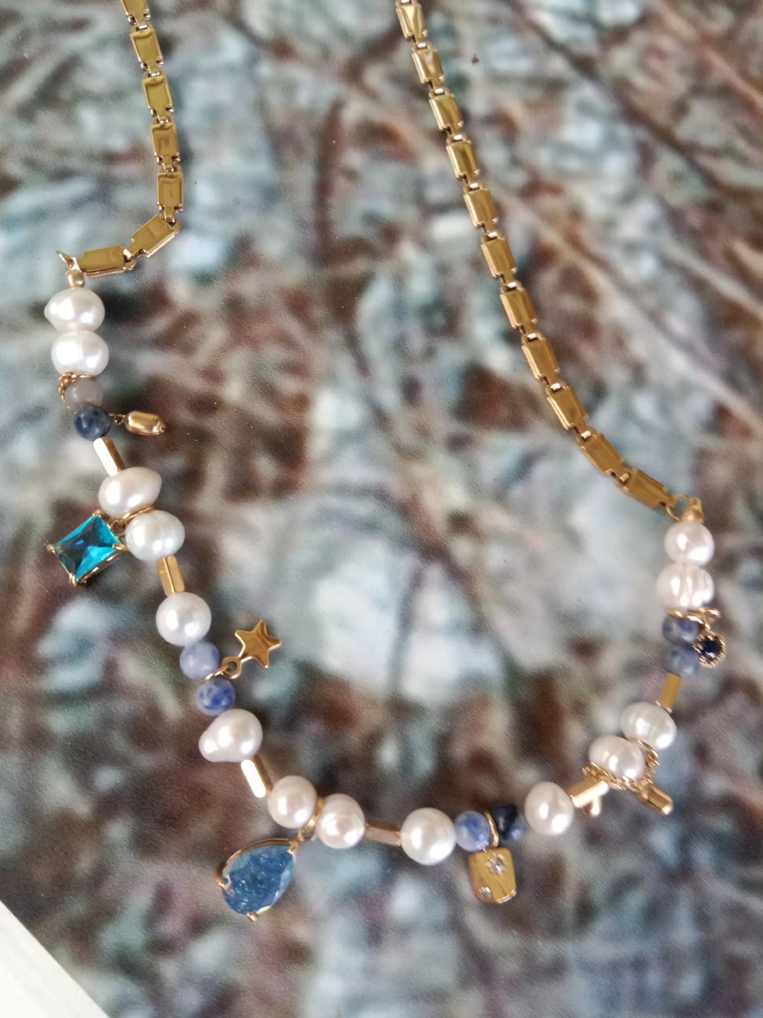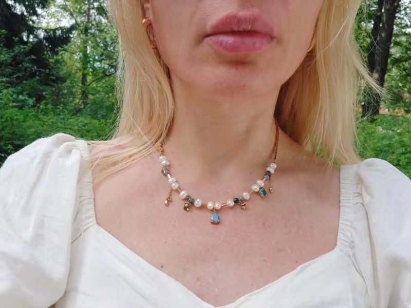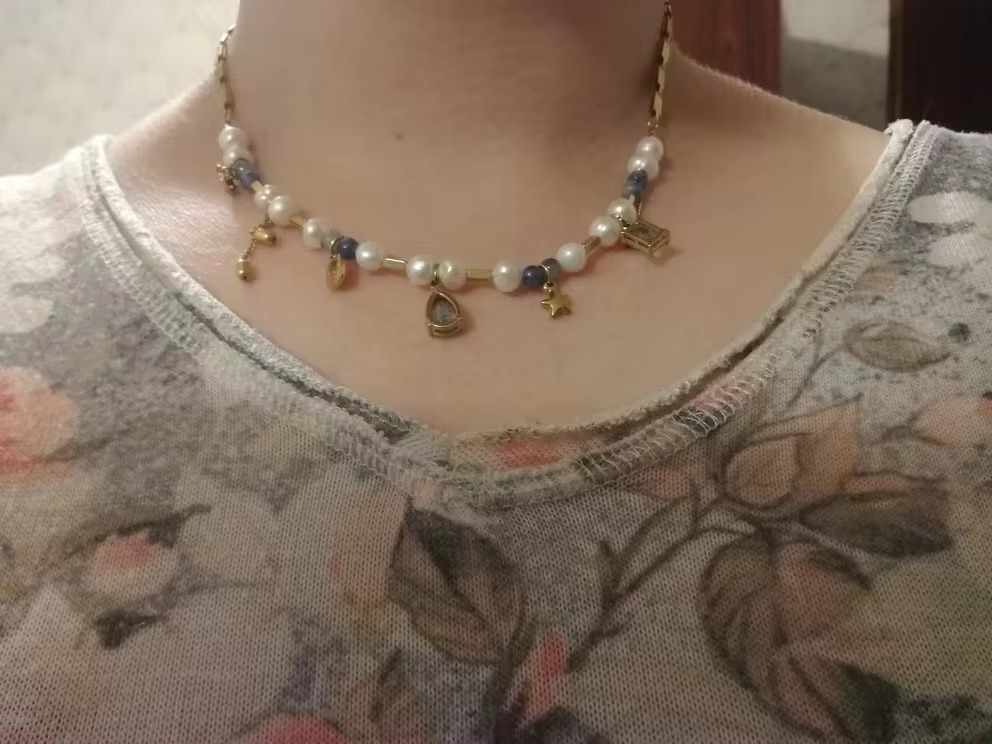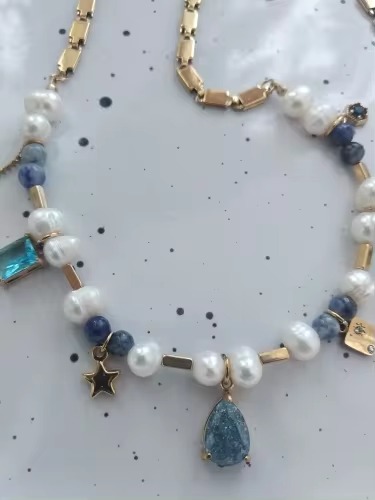 Natural Stone Pearl Beads Crystal Stainless Steel Necklace