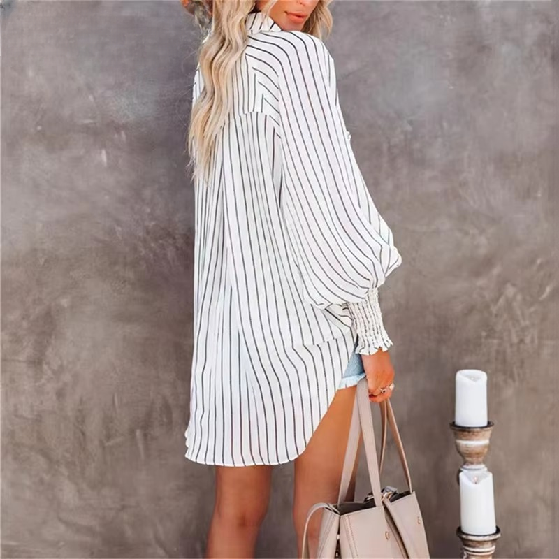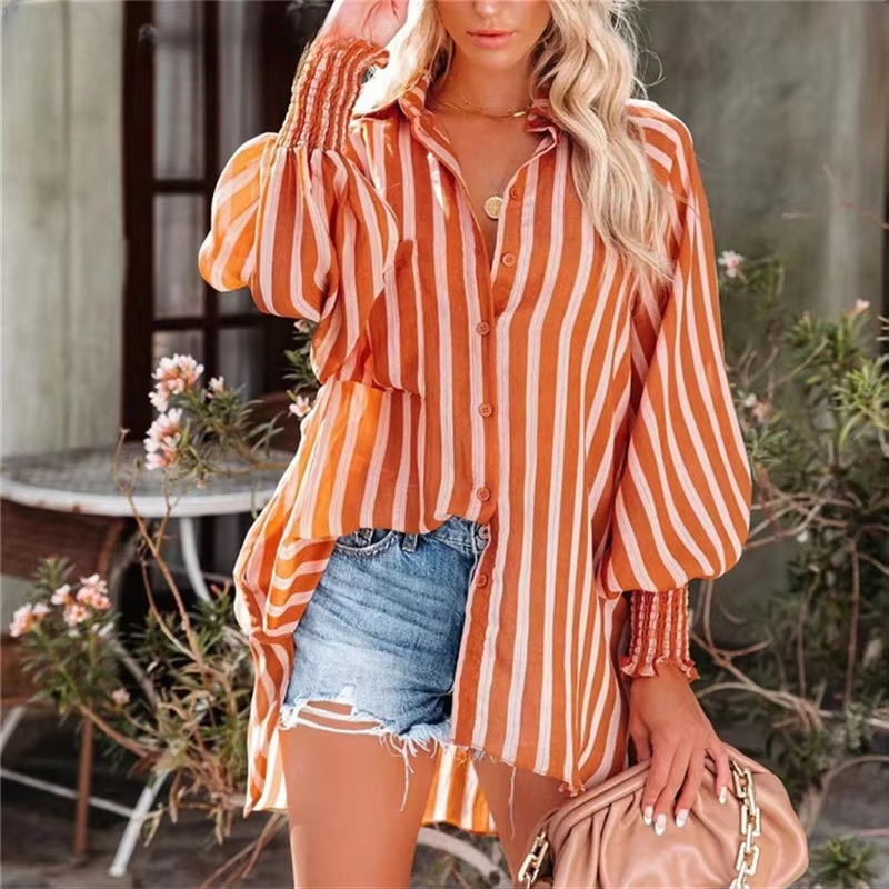 Casual Lapel Thin Mid-Length Striped Long-Sleeve Blouse Shirts