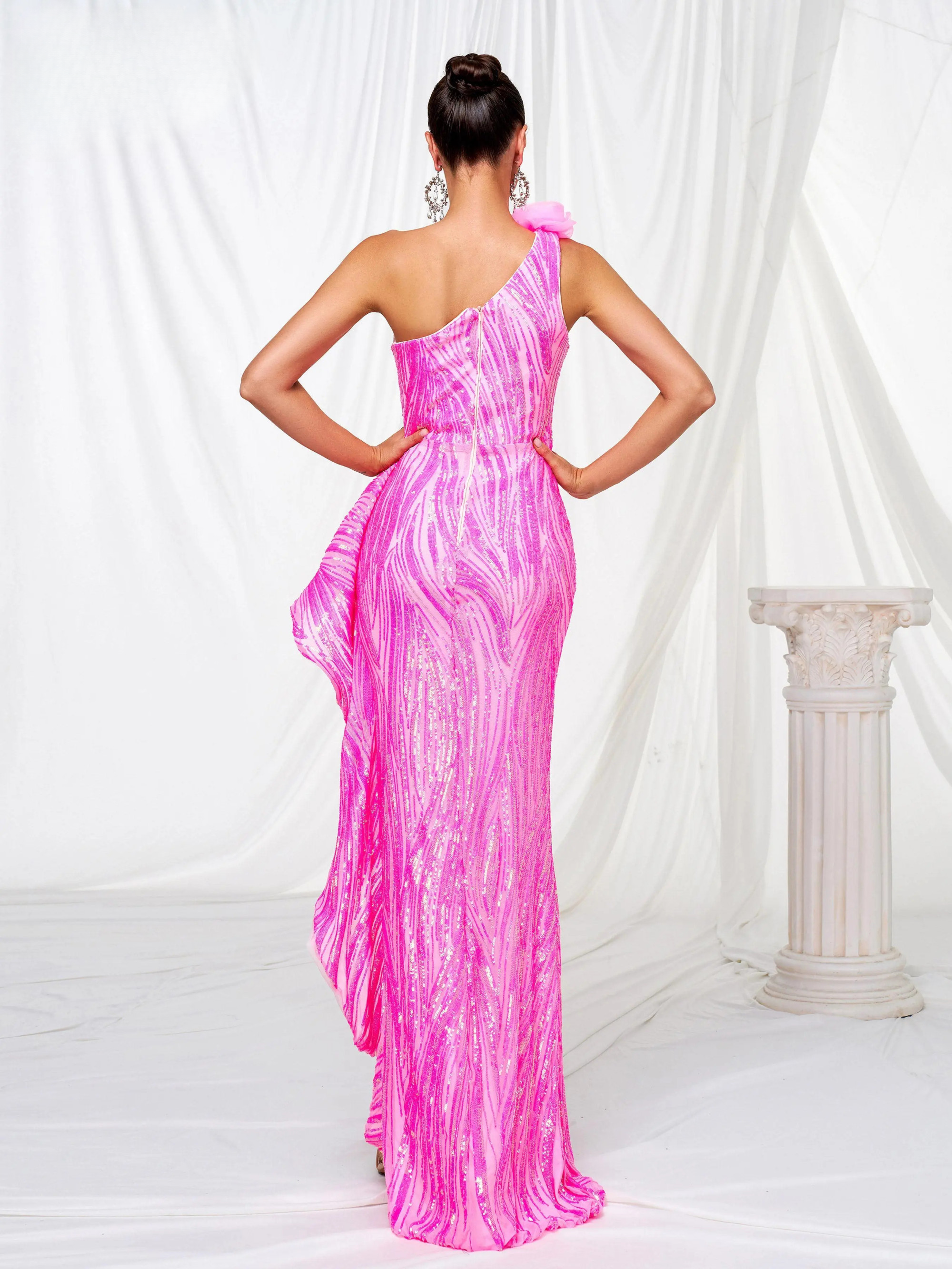- Neckline: asymmetrical