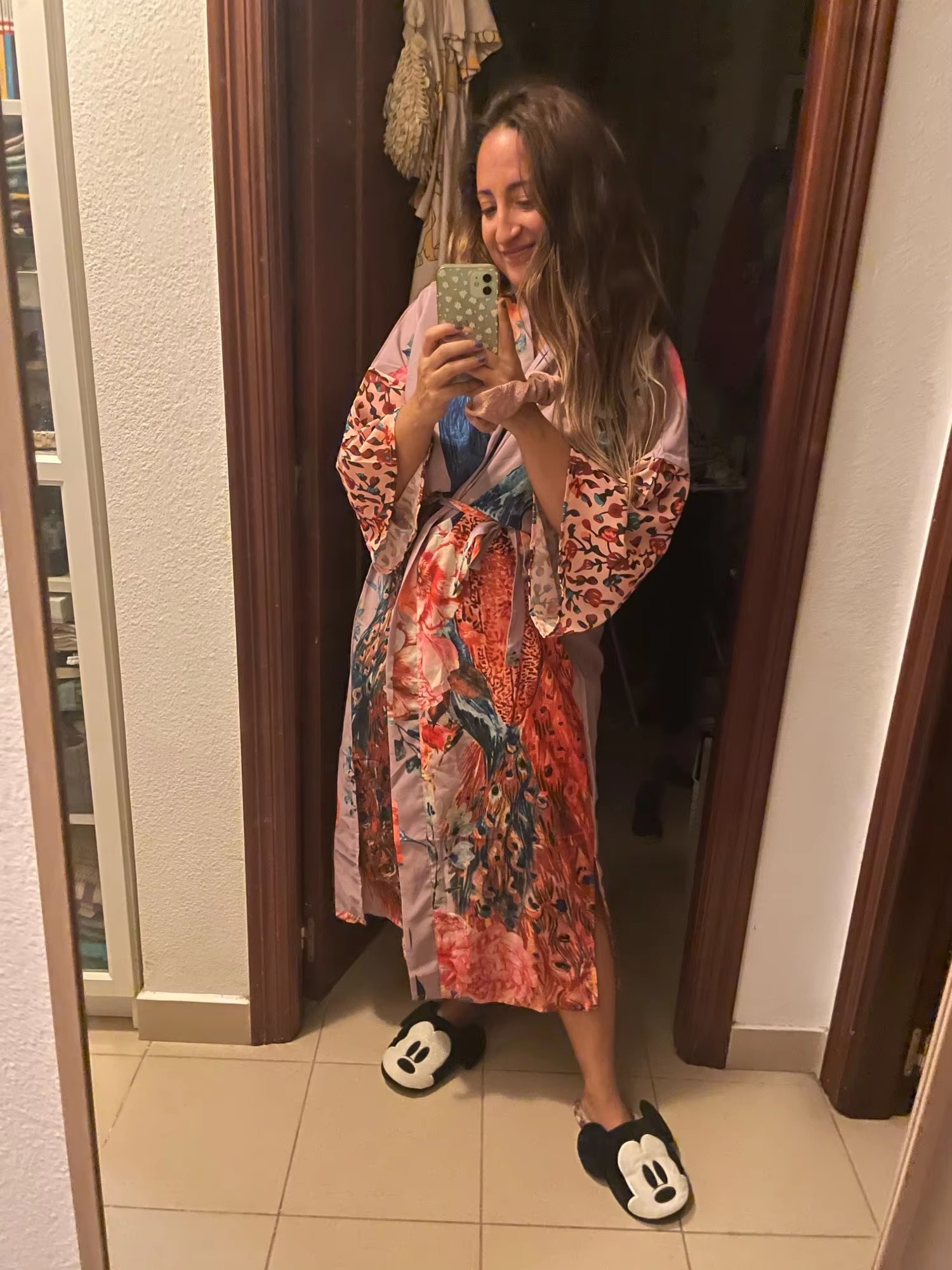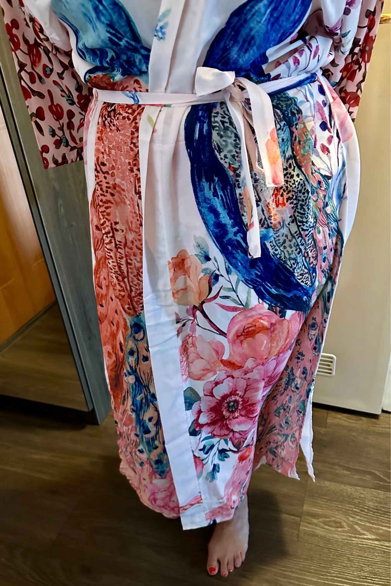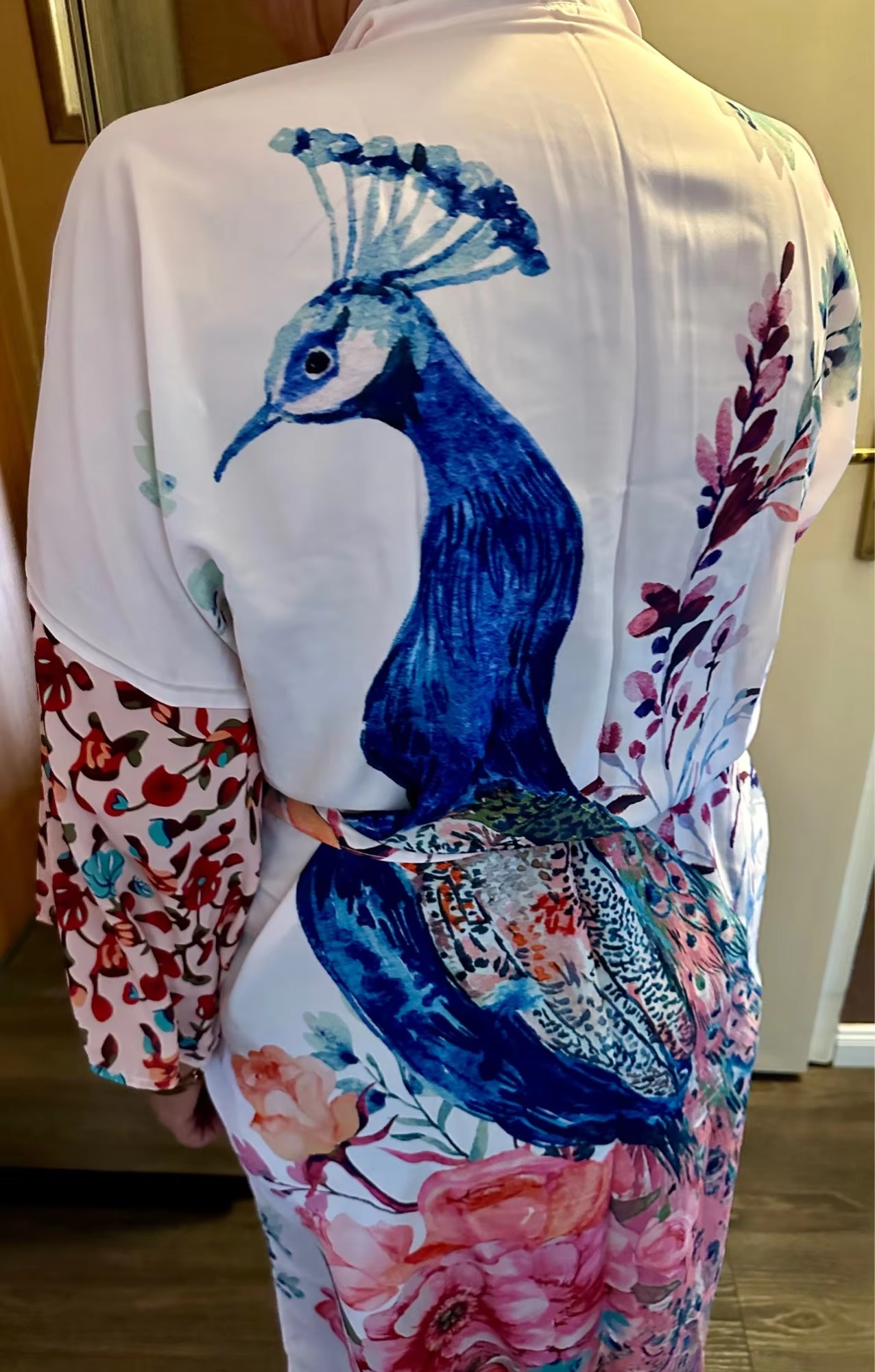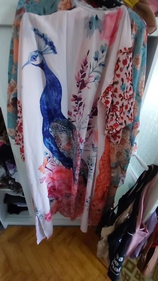 Peacock Printed Self Belted Wrap Beach Kimono Cover Ups