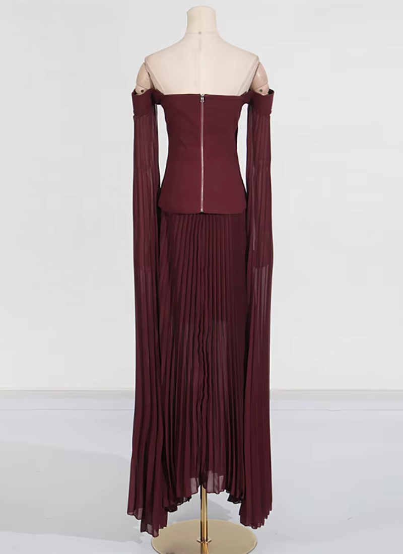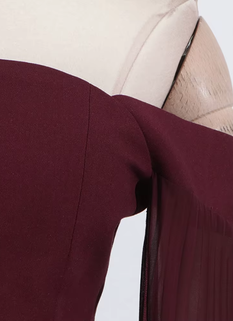 - Neckline: Off-shoulder