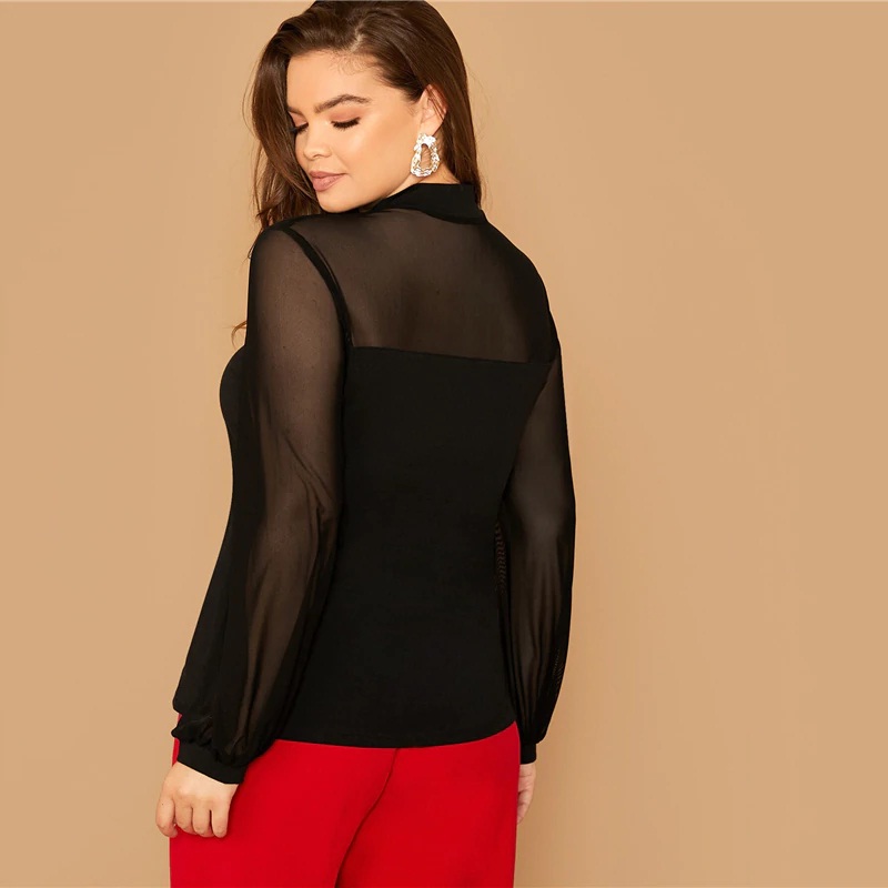 - Details : Contrast Mesh, Sheer, Tie Neck