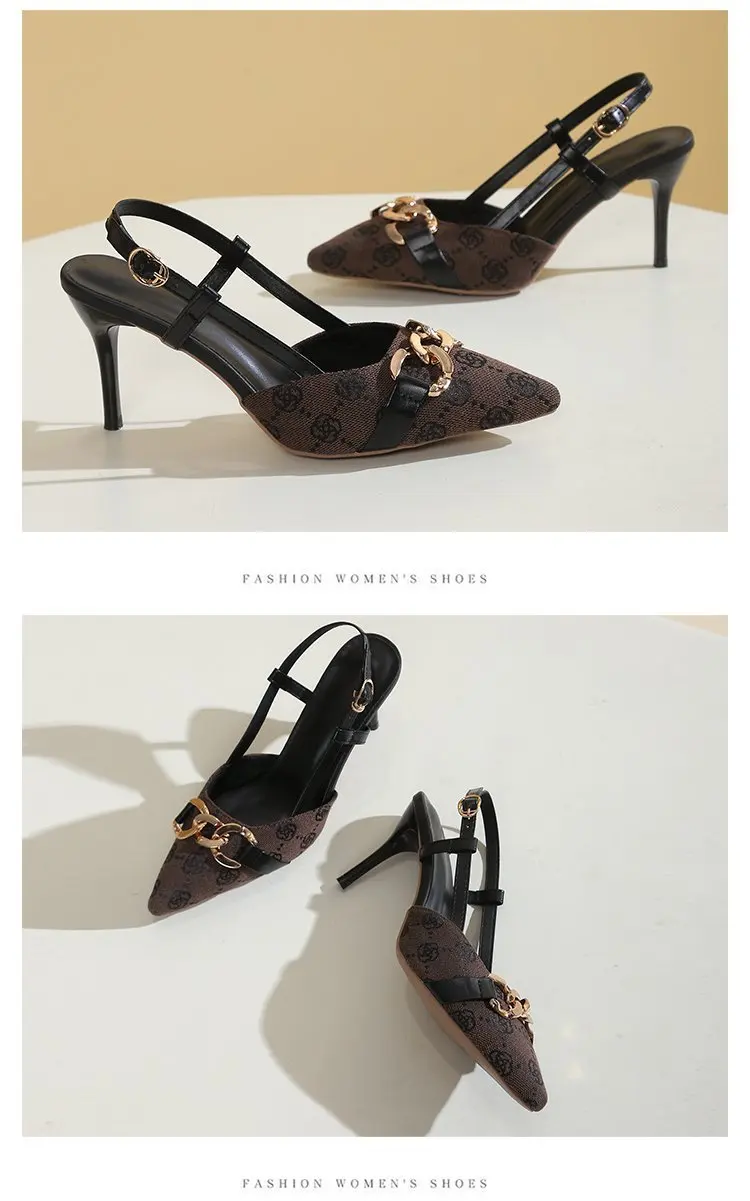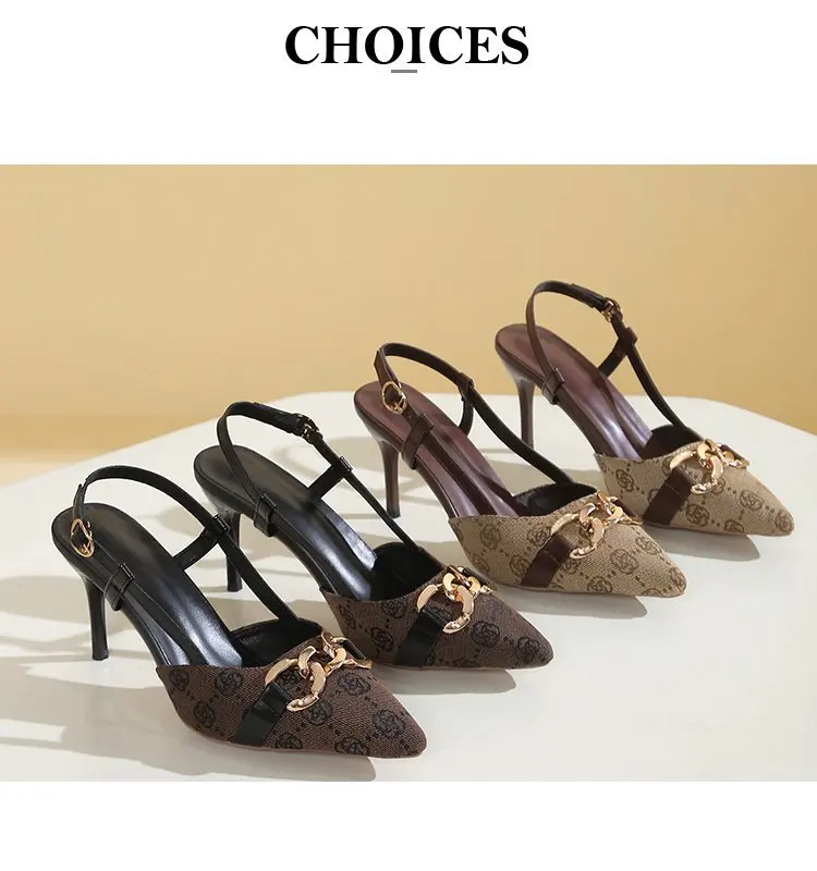 Pointed Head Shallow Mouth Metal Buckle Anti-slip High Heels Sandals