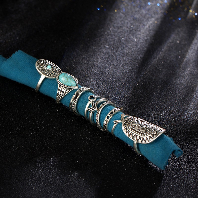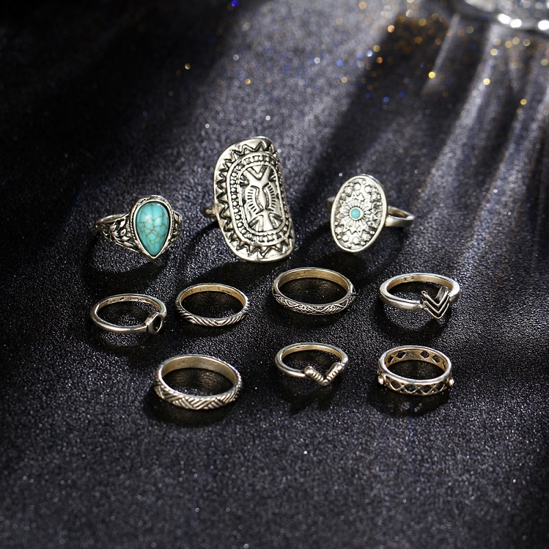- Design : Retro Pattern Ring Stone Ring Geometric Ring Sets Ethnic Ring Sets