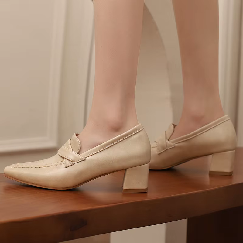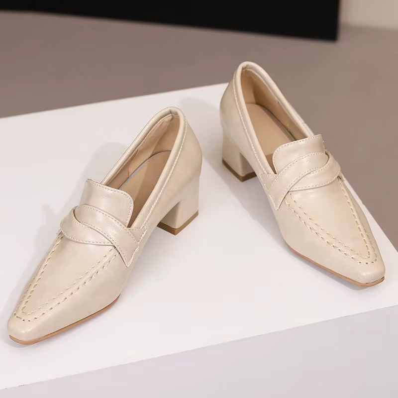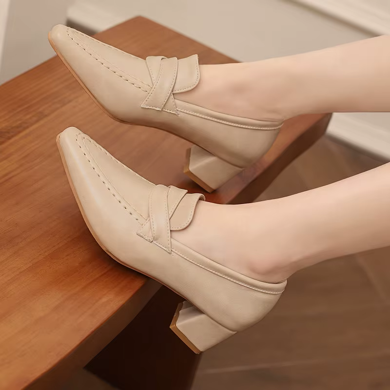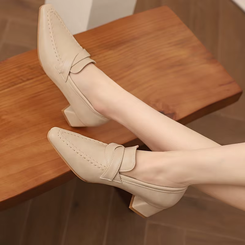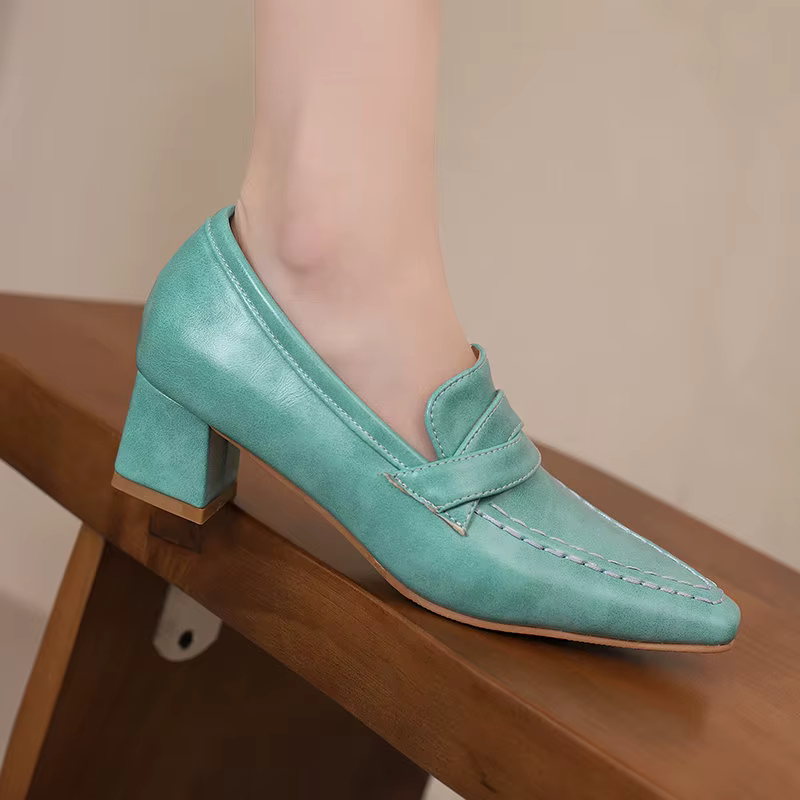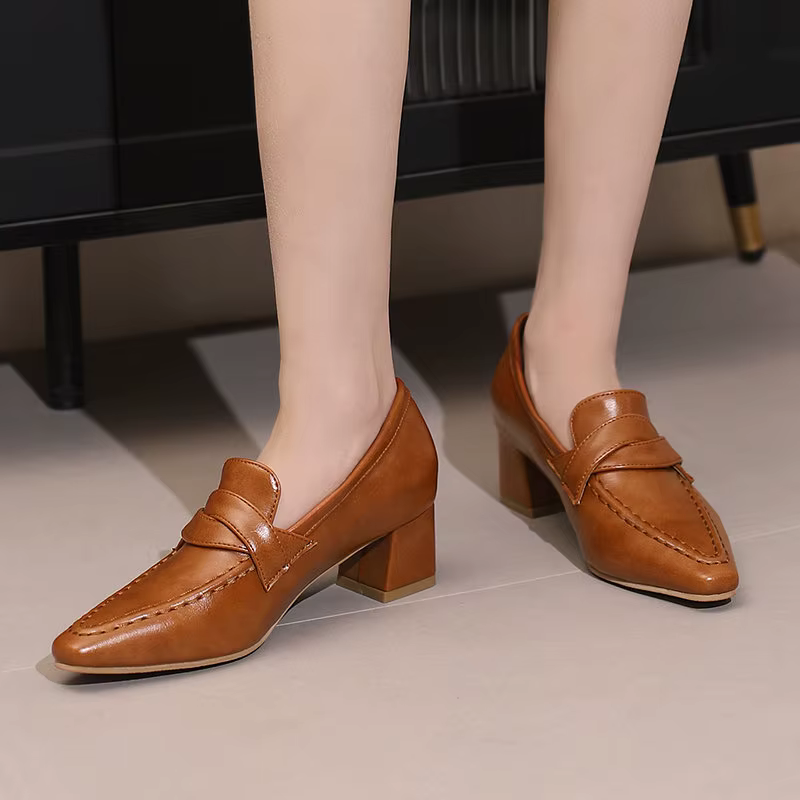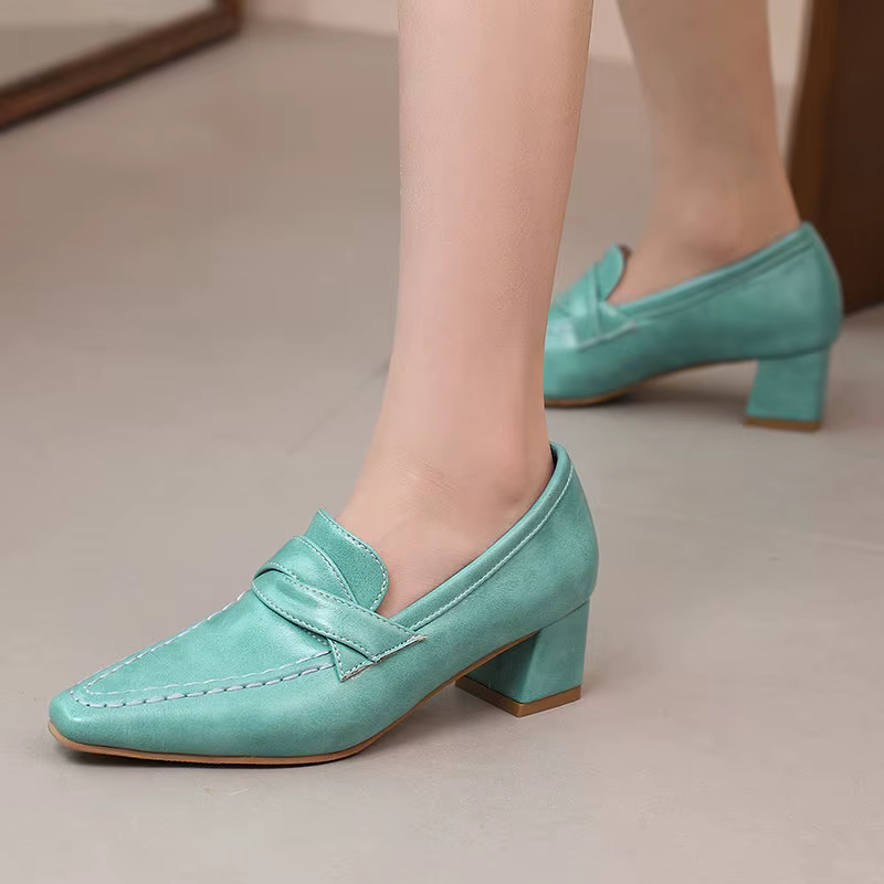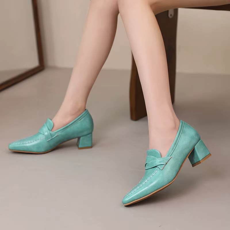 Retro Square Toe Chunky Slip On Vintage Daily Office Lady Shoes