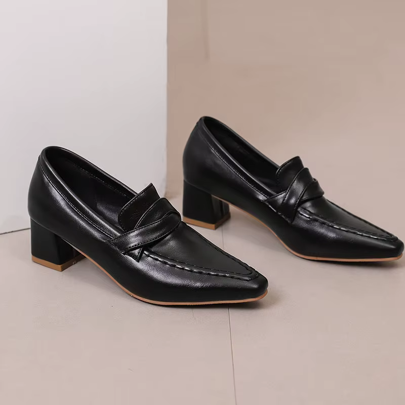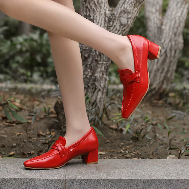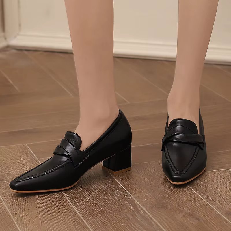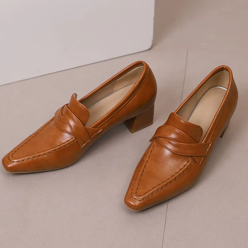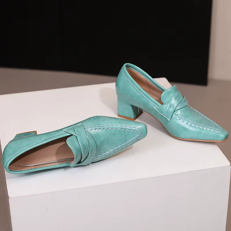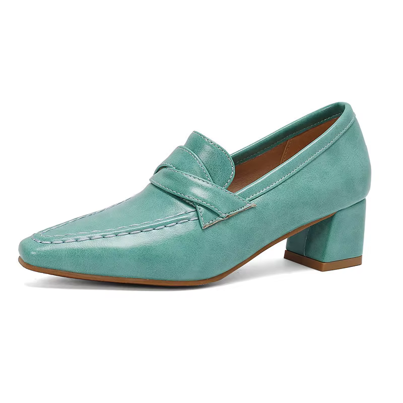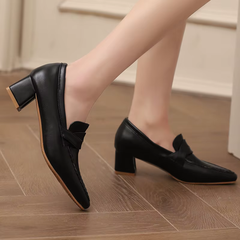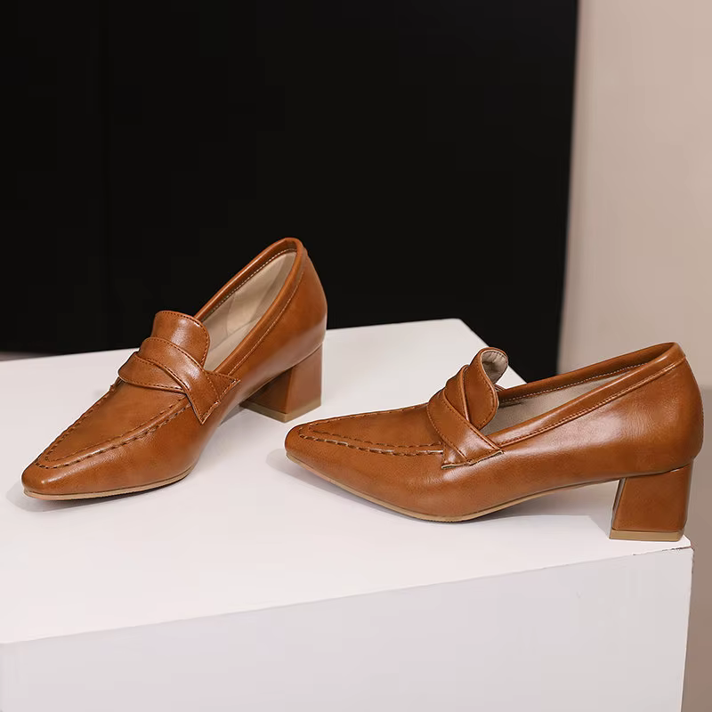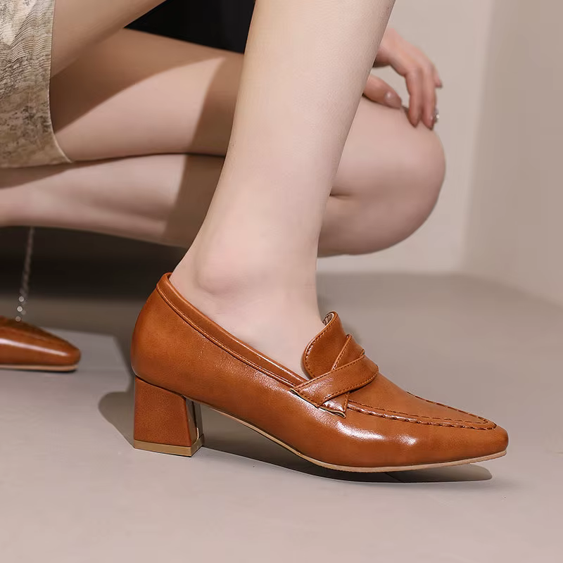 Retro Square Toe Chunky Slip On Vintage Daily Office Lady Shoes