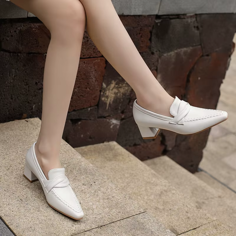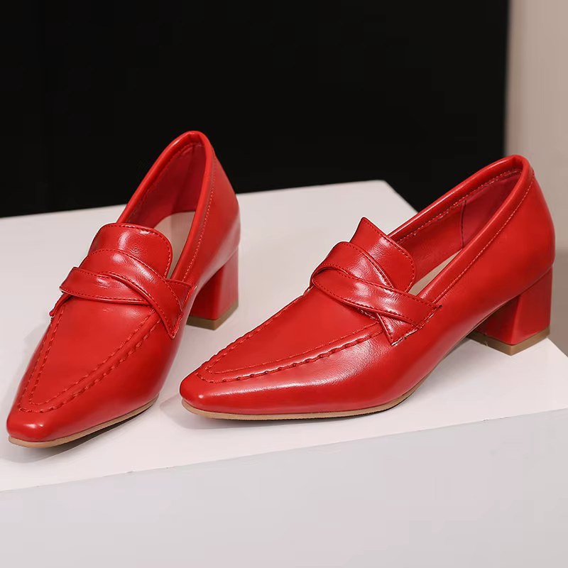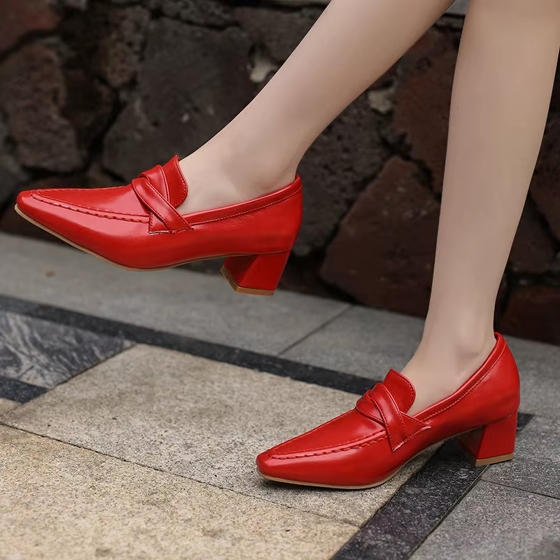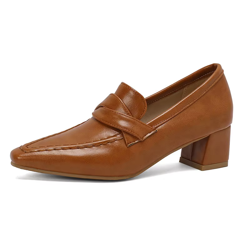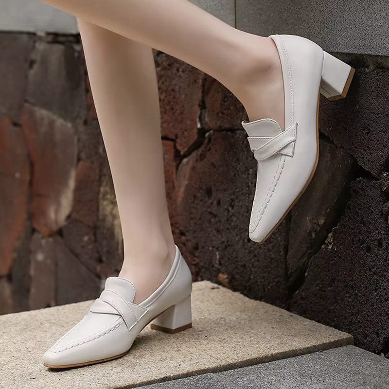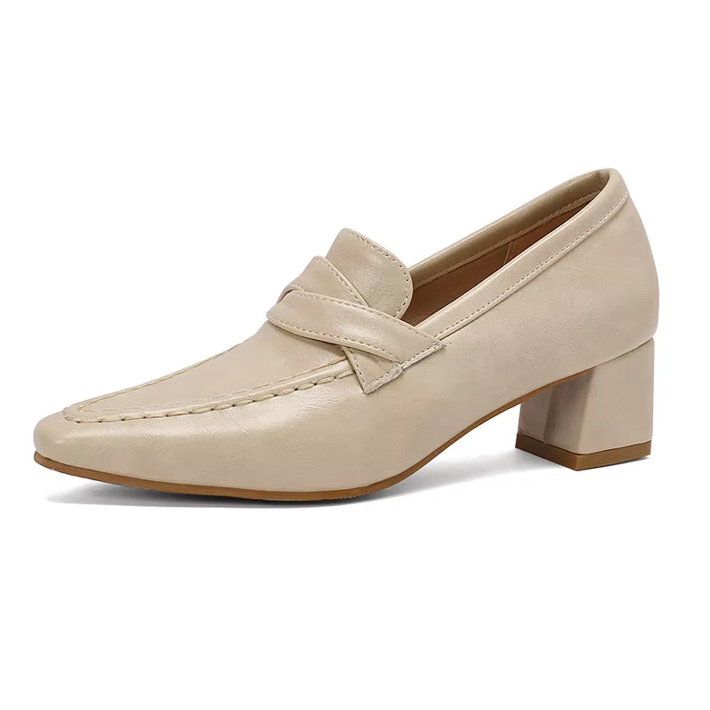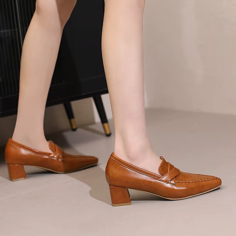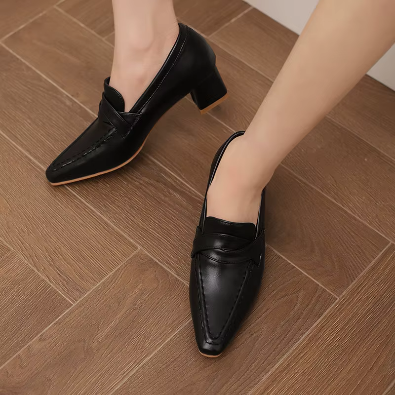 Retro Square Toe Chunky Slip On Vintage Daily Office Lady Shoes