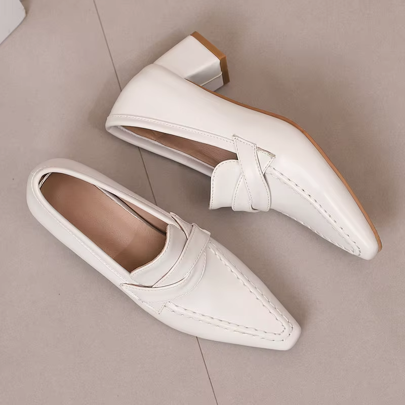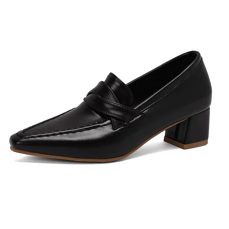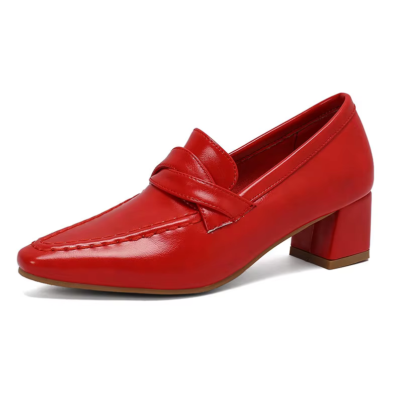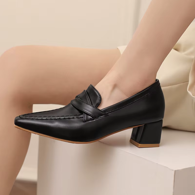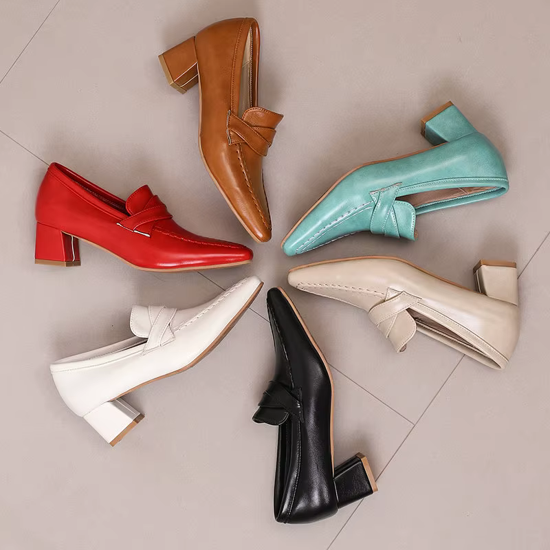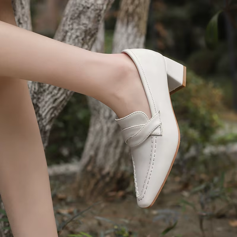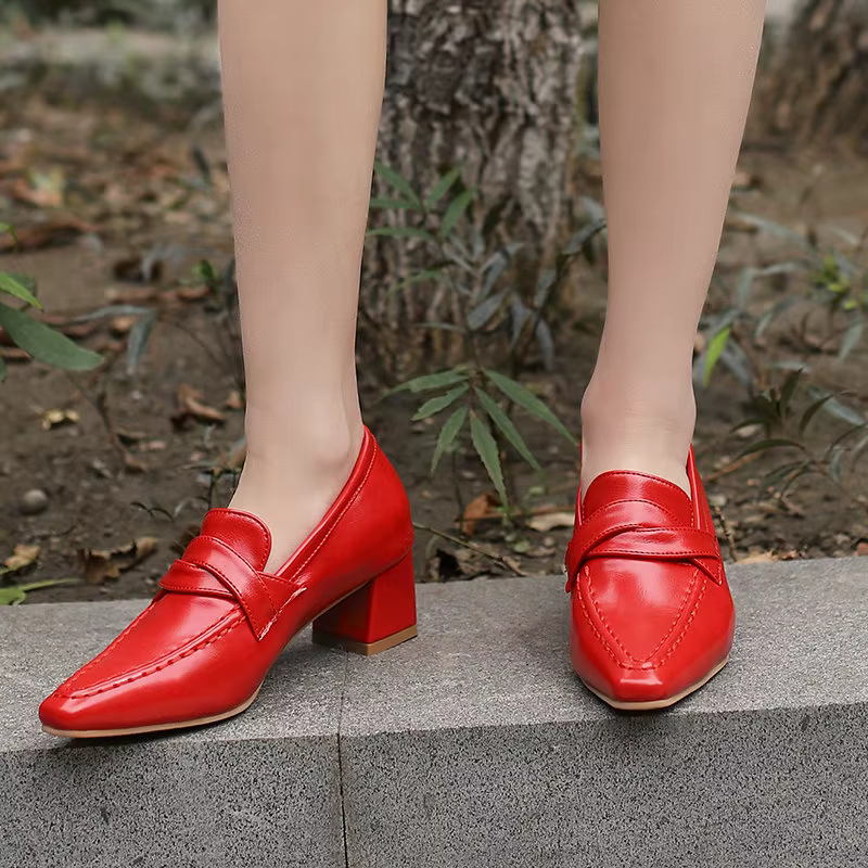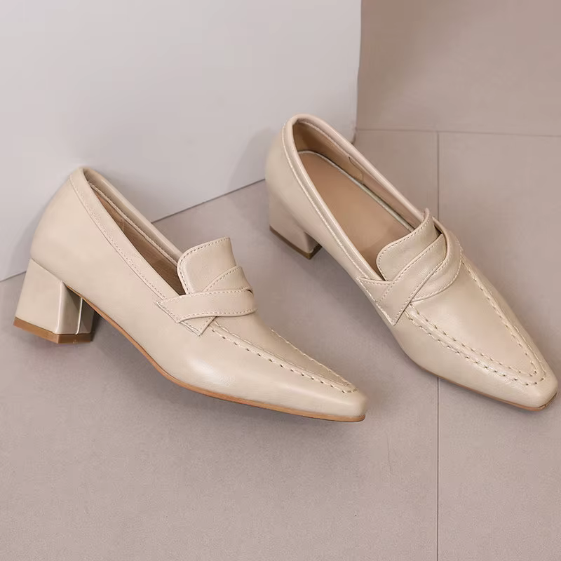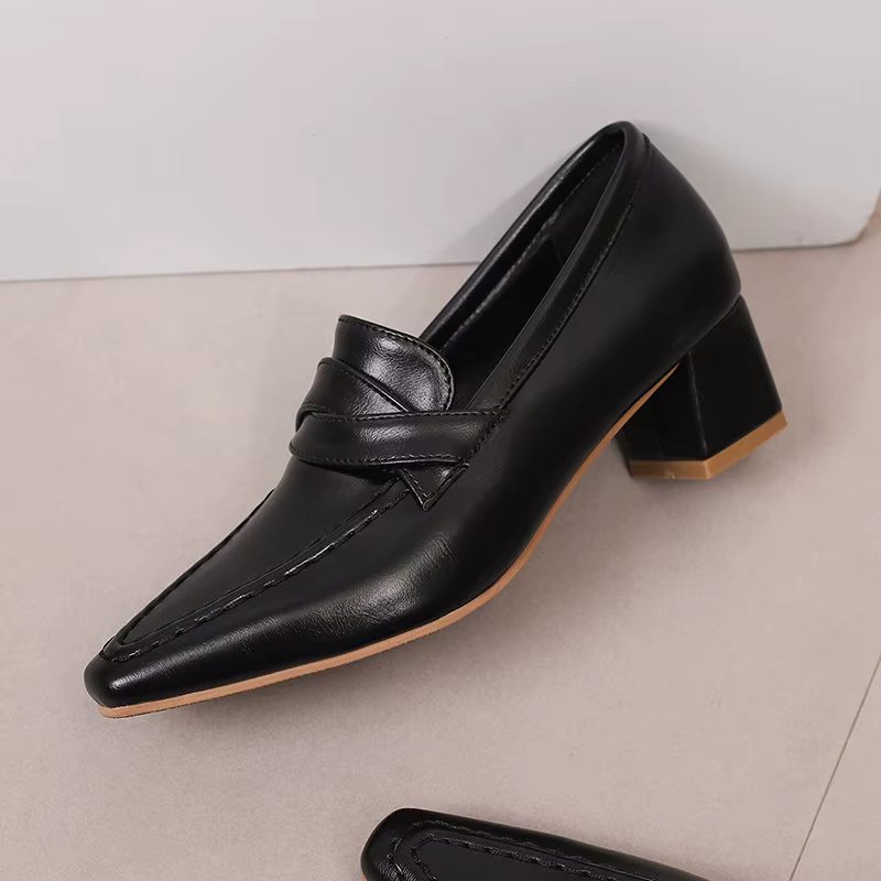 Retro Square Toe Chunky Slip On Vintage Daily Office Lady Shoes