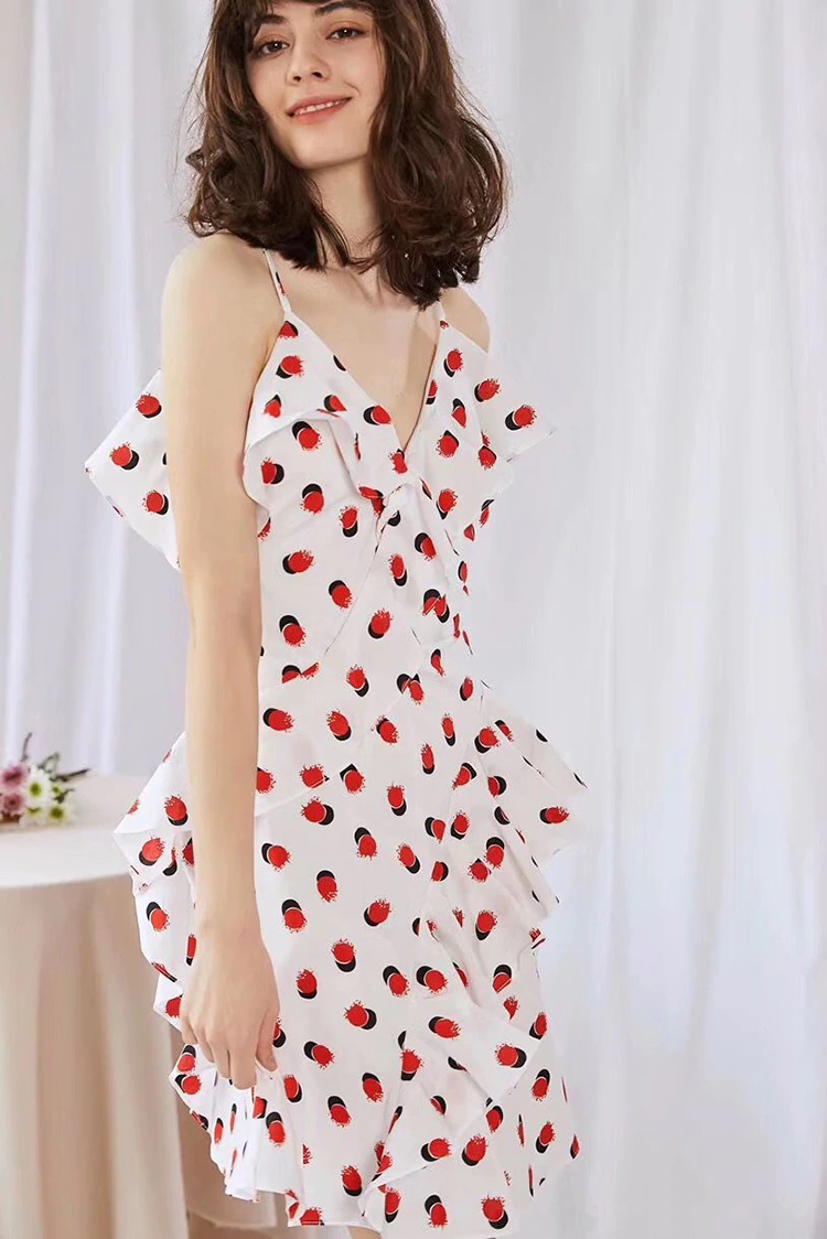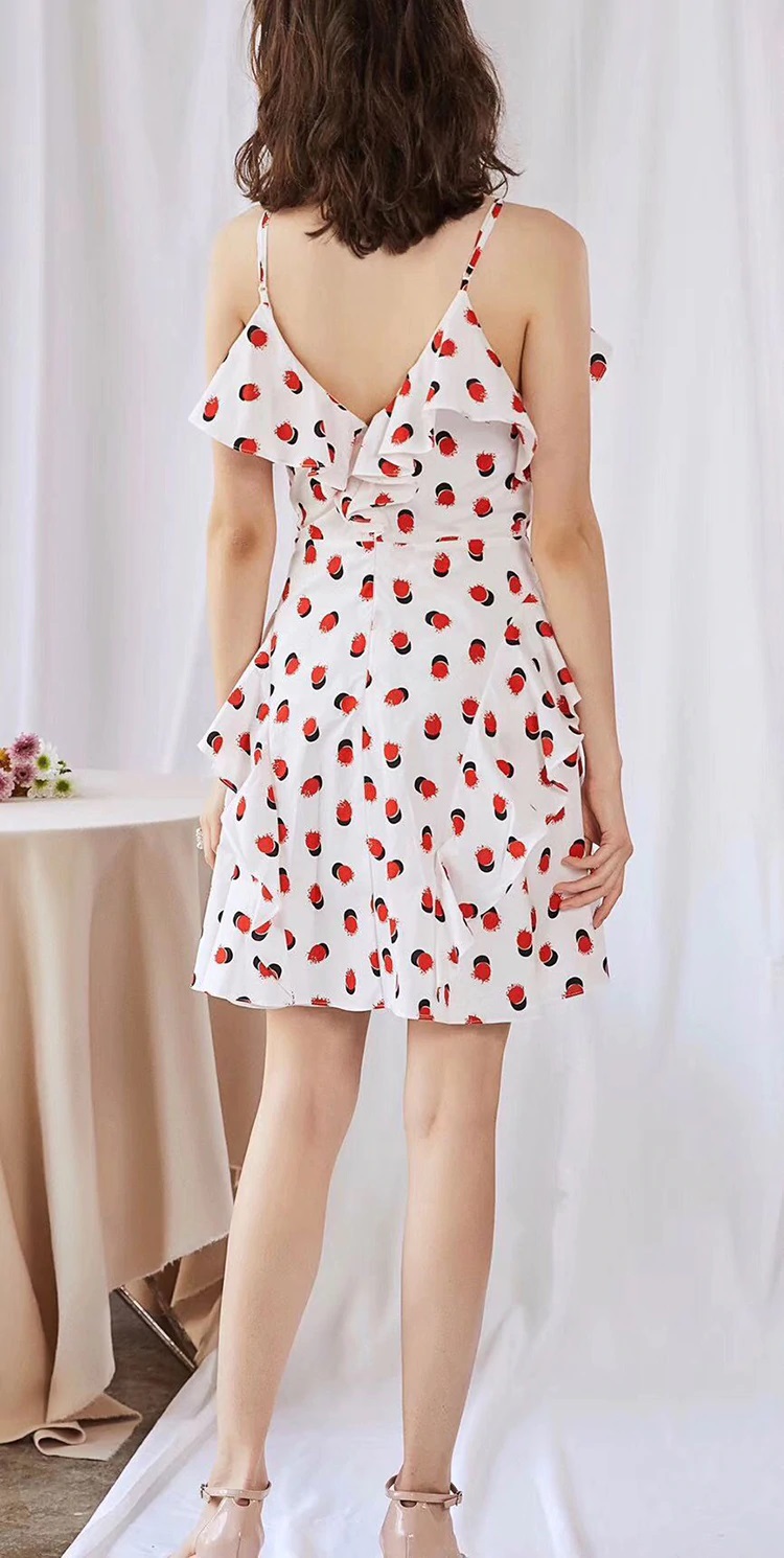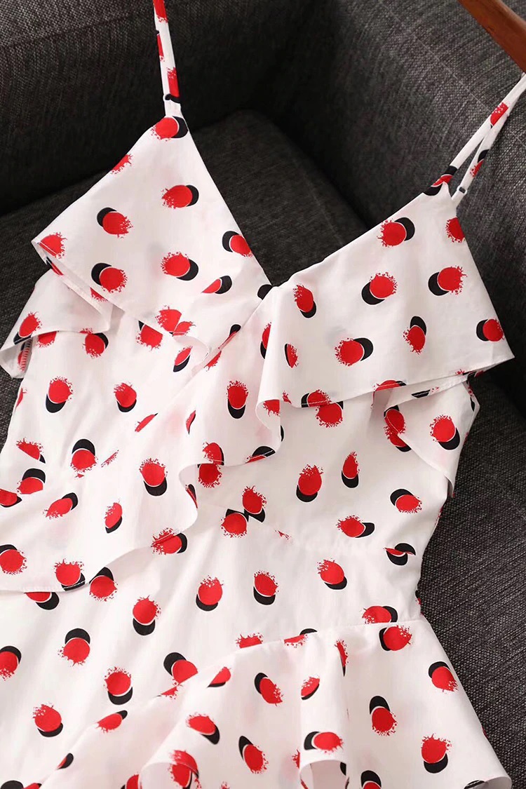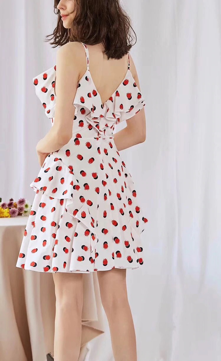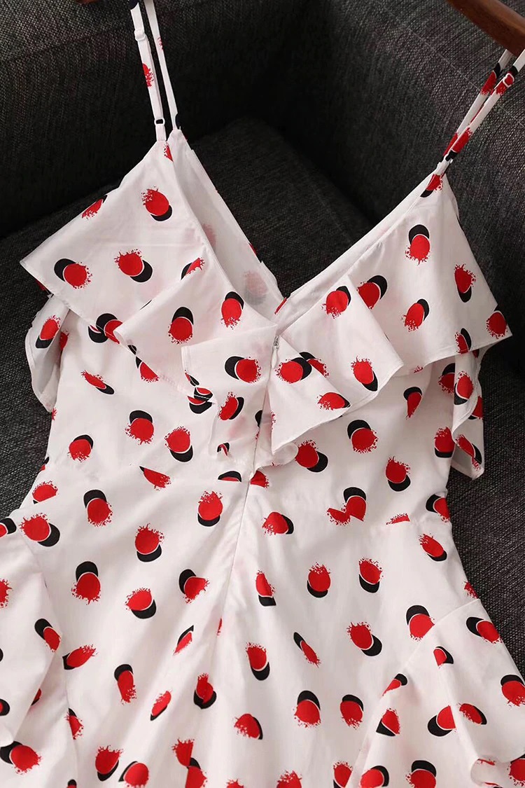 Sexy Deep V-Neck Ruffles Cotton Spaghetti Strap Mini Dress