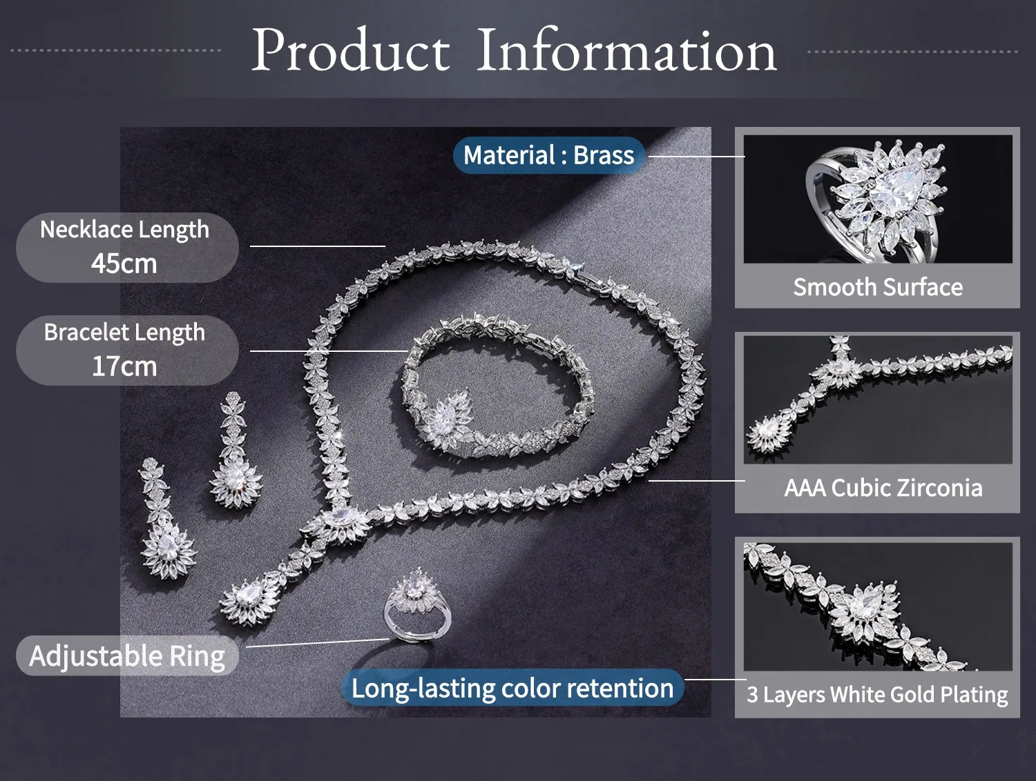 - Jewelry Sets Type : Necklace/Earrings/Ring/Bracelet