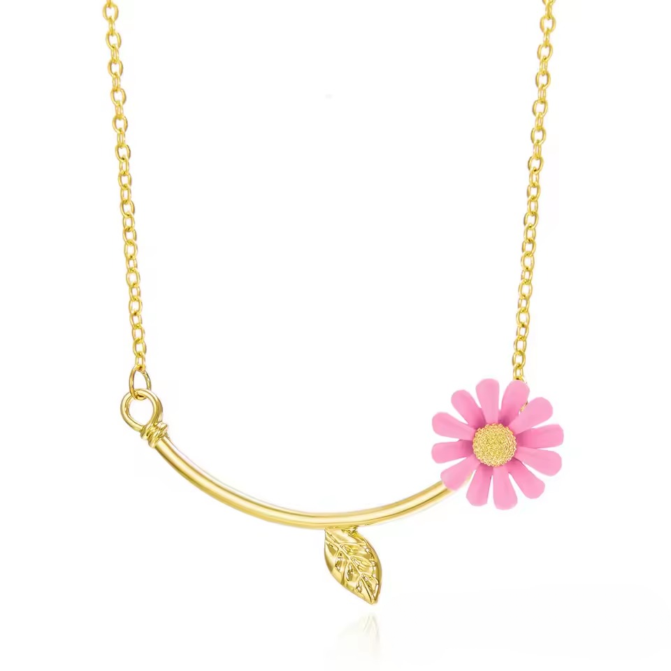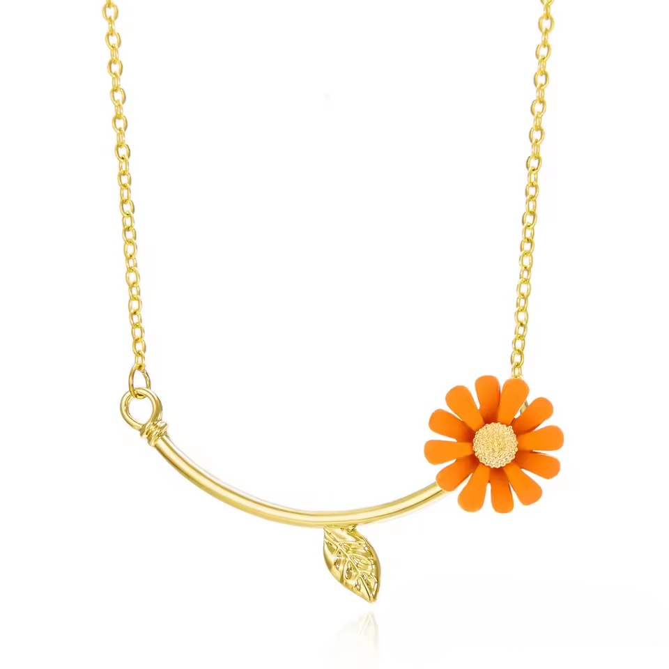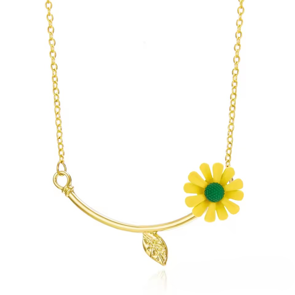 Trendy Sweet Sunflower Floral Zinc Alloy Plant Necklace