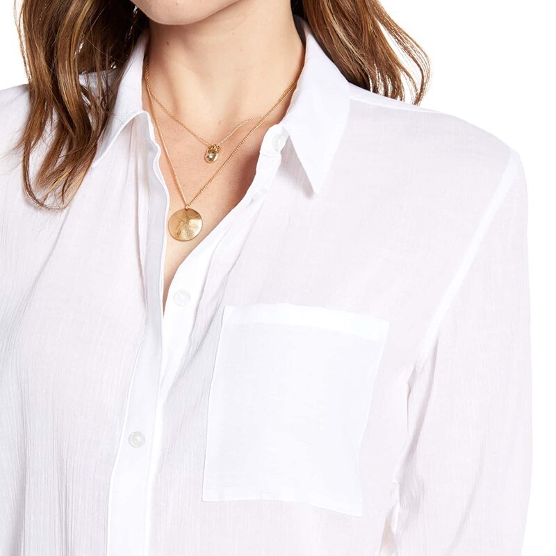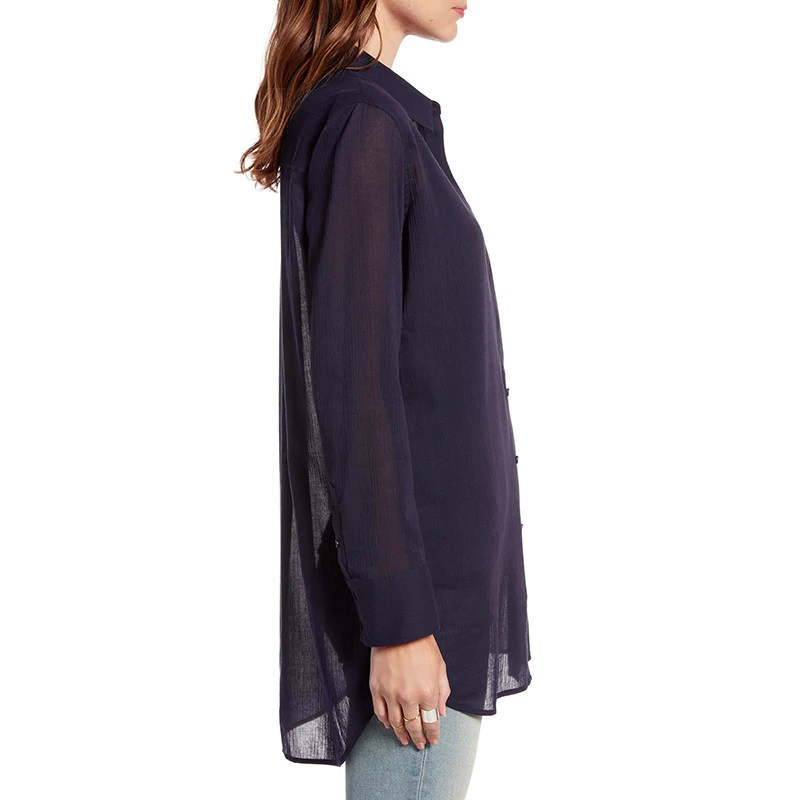 Turn Down Collar Tunic Casual Loose Long Sleeve Shirt