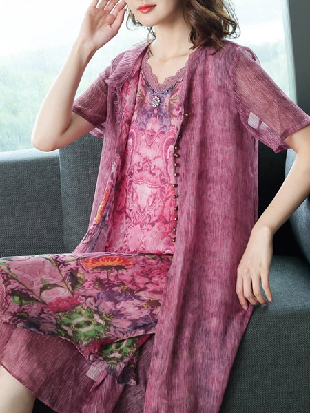 Vintage Floral Two Pieces Set Dress for Women