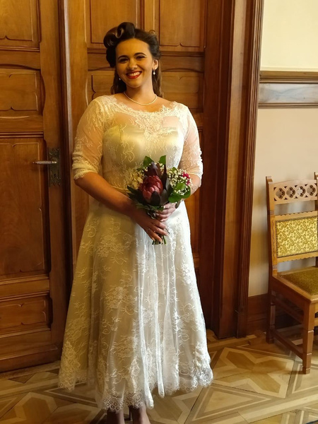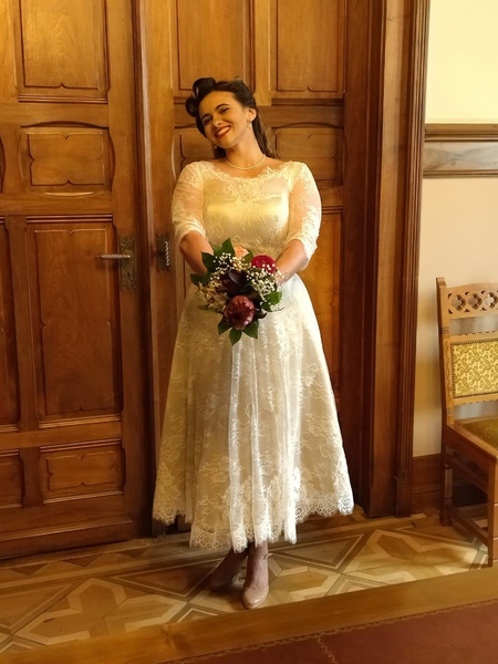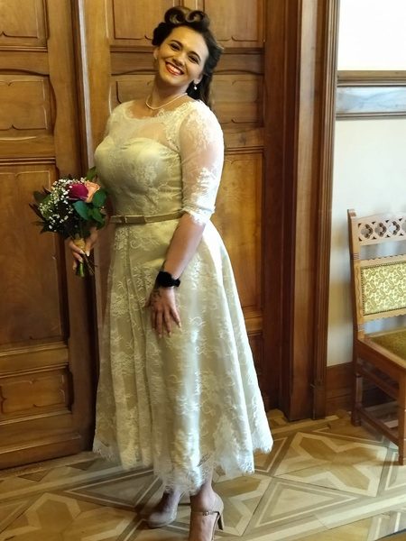 - Hemline/Train : Tea-Length