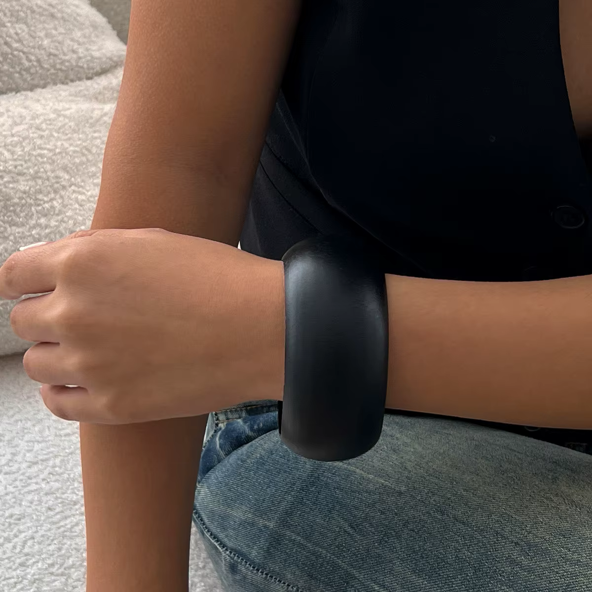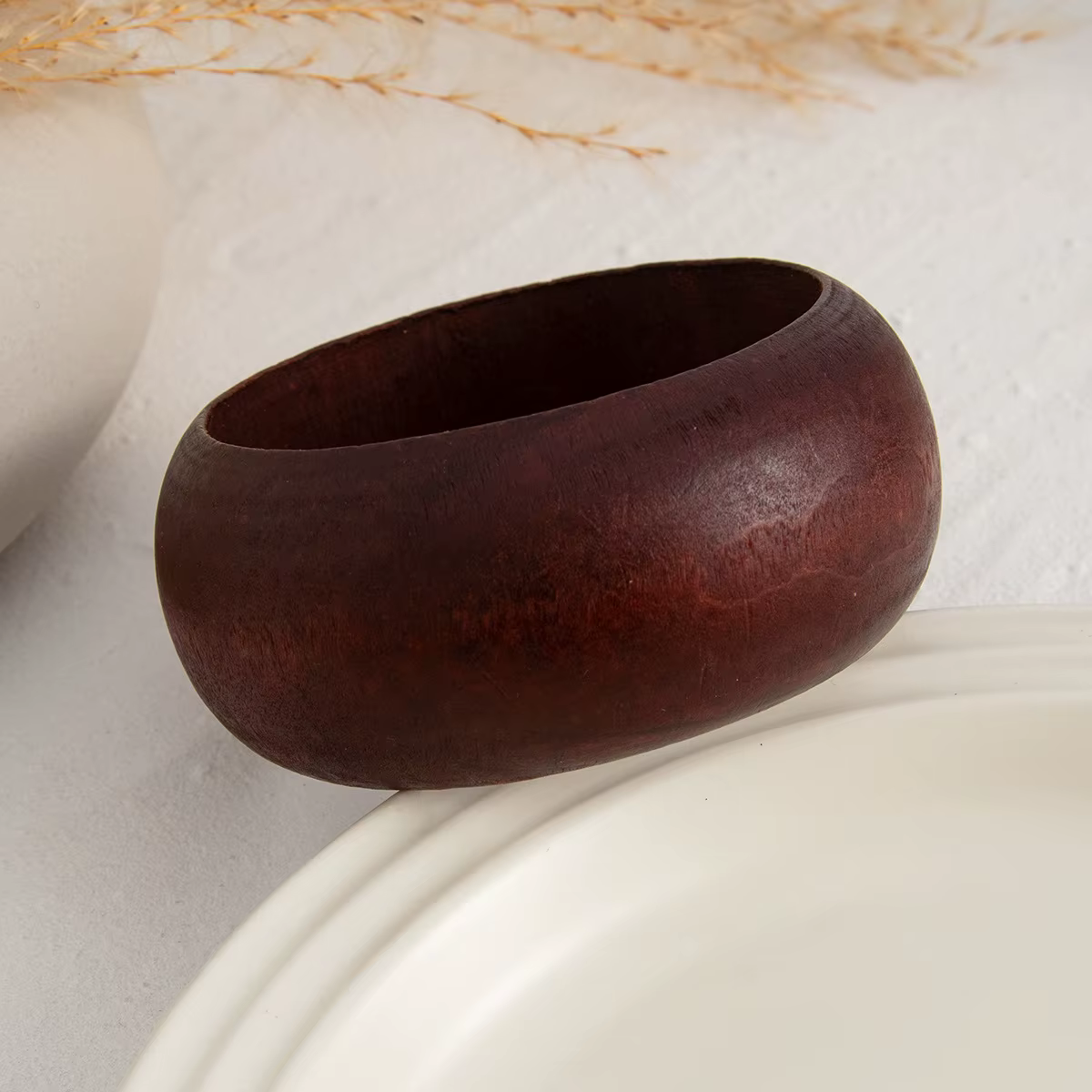 Vintage Punk Wood Hip Hop Round Geometric Wide Bracelet