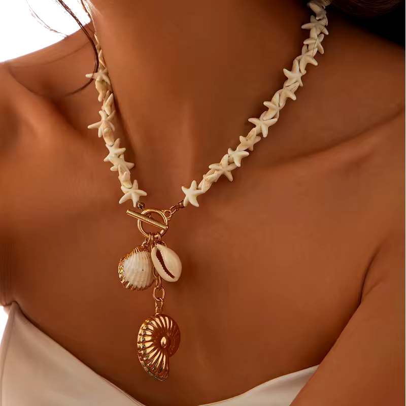 Vintage Starfish Beaded Shell Niche Style Clavicle Chain Necklace