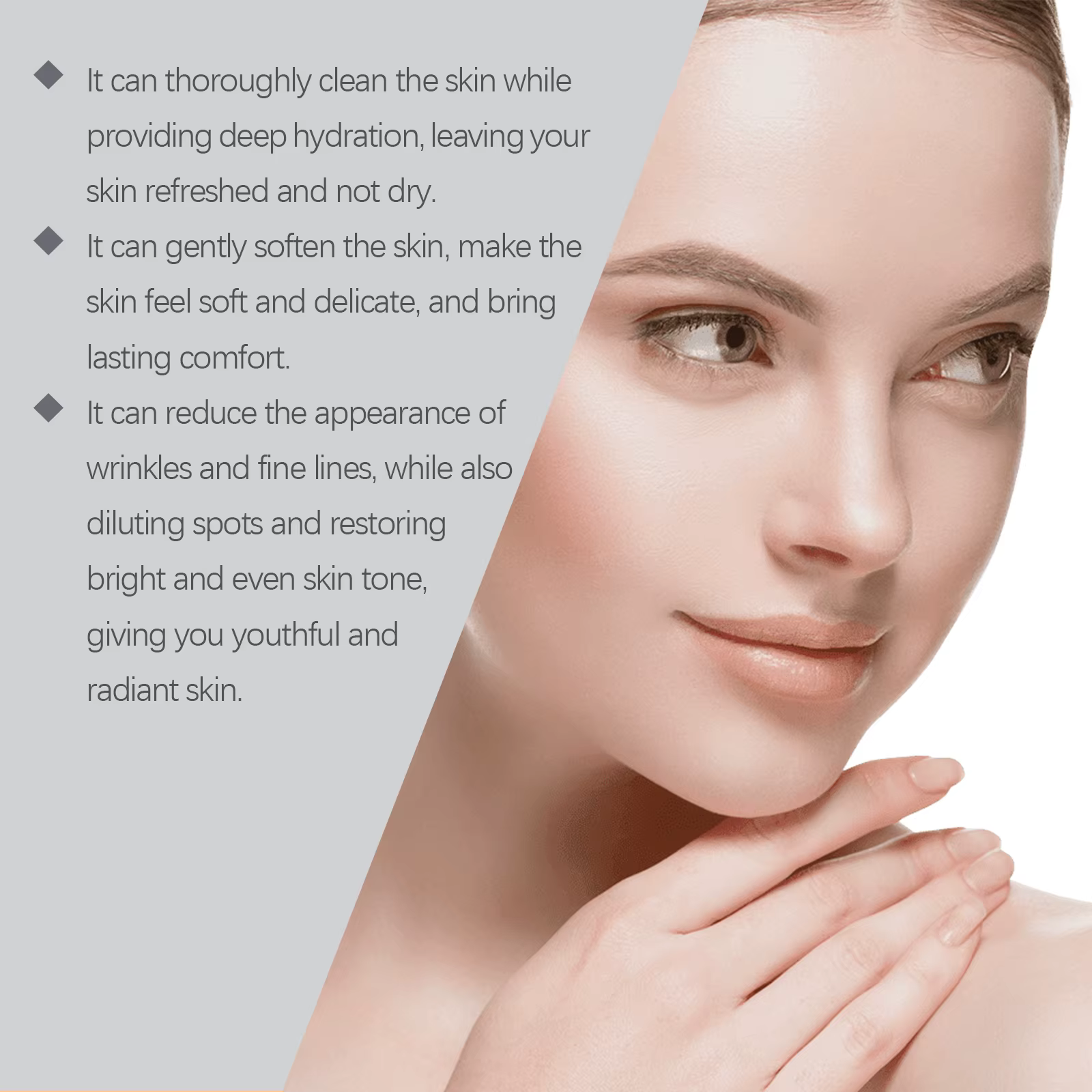 3. It can reduce the appearance of wrinkles and fine lines, while also diluting spots and restoring bright and even skin tone, giving you youthful and radiant skin.
