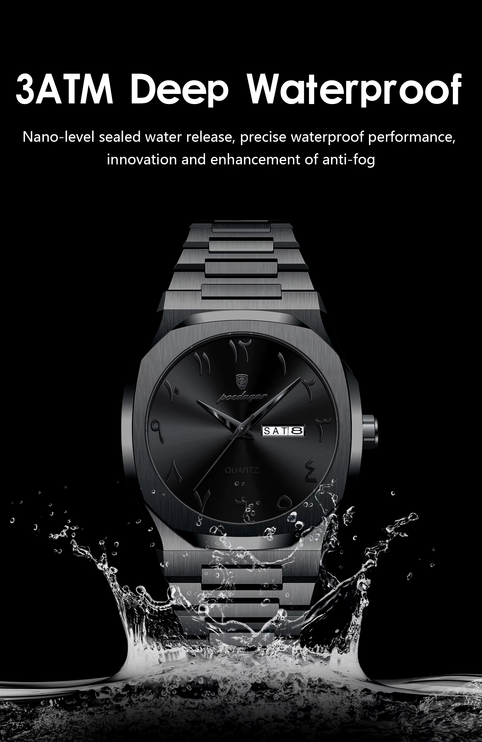 - Feature : Auto Date,Water-Resistance,swim,Week Display